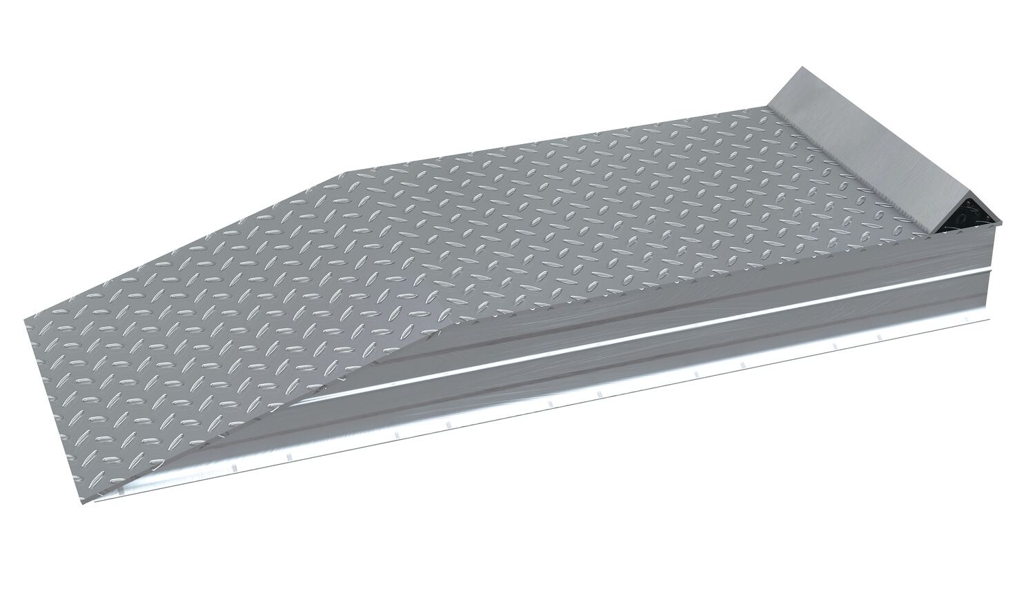 Aluminum Tread Plate Wheel Riser with Roll Off Guard 66 In. x 24 In. x 12-1/16 In. 30000 Lb. Capacity SilverA standard wheel riser is a great asset to have available when working in the shipping and receiving industries. But, this wheel riser is more than standard. With an aluminum construction, this unit includes a roll off edge guard that acts as a stop point. This allows the user to safely mount the wheel riser without the fear of going too far. The raised tread surface gives added traction throughout the ascending and descending action.