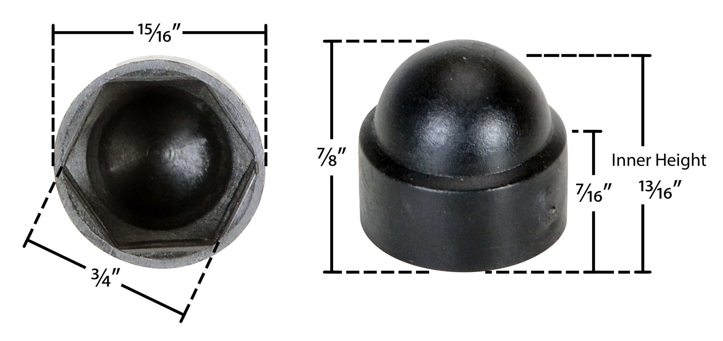 These plastic bolt caps are designed to finish and protect bolt heads. They have an easy press fit installation over the existing nut. Molded black plastic construction.
