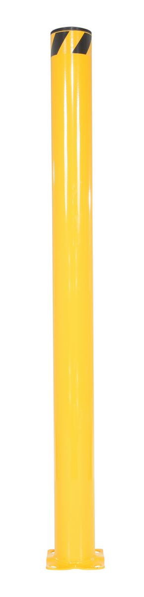 Safety bollards protect both objects and personnel. With a robust design the bollard can be used in a variety of settings, while enduring harsh conditions. Cap is removable and made of plastic. Powder coat finish for baked in added toughness.