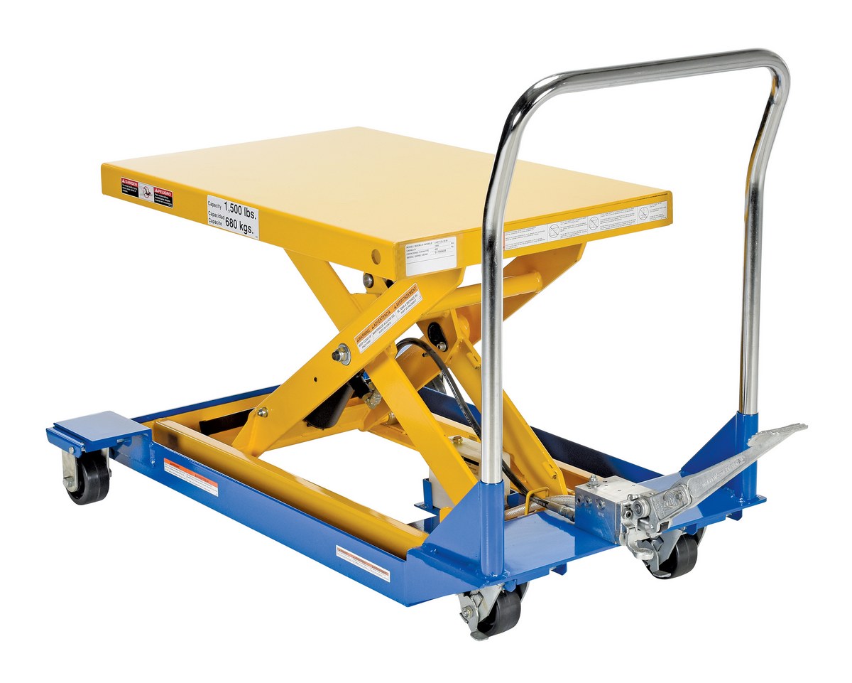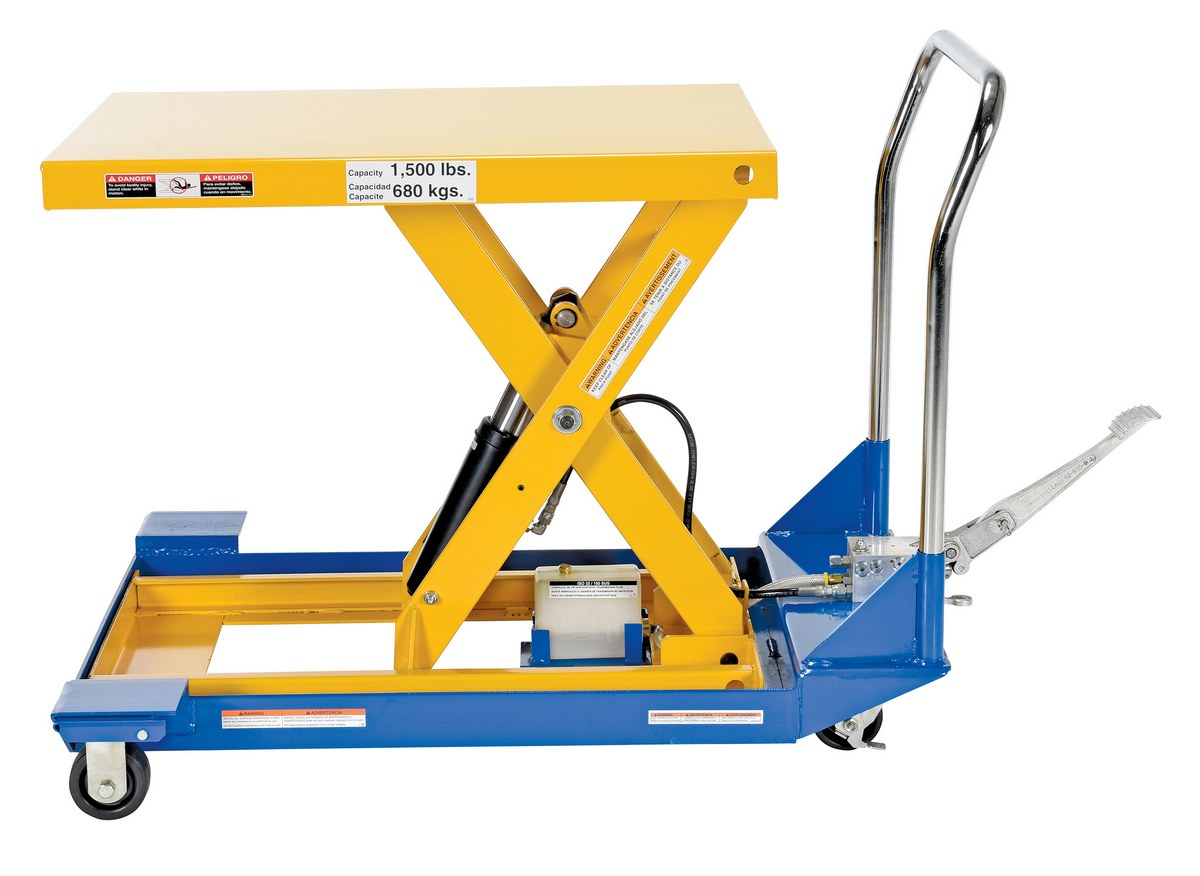 Steel Foot Pump Scissor Cart 36 In. x 24 In. 1500 Lb. Capacity Blue / Yellow