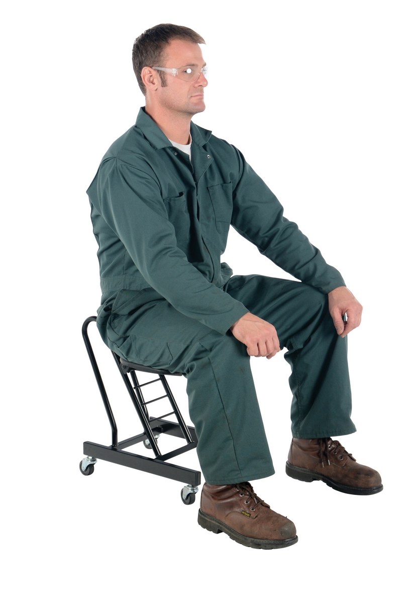The Ergonomic worker seat allows individuals to go from a low crouch position to a standing position. The seat height can be adjusted by moving the seat and hooking in to the horizontal bars located on the chair frame. Portable on swivel casters. The unit has four rubber "shocks" under the seat base that allow the seat to tilt forward, left, and right so it can accommodate your body movements. The front tilted position of the seat helps the user maintain the natural posture position of the spine.