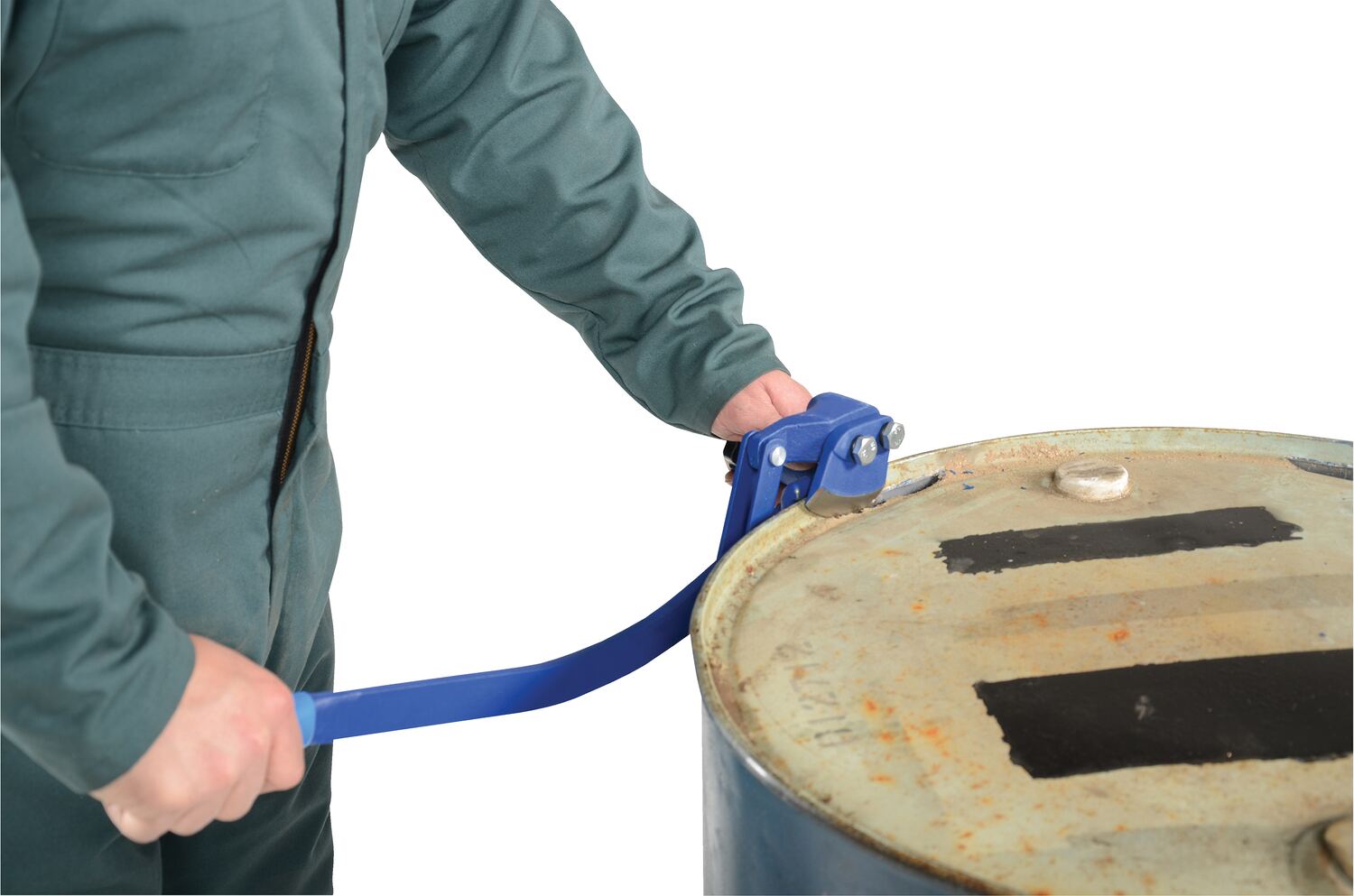 Steel Manual Drum Deheader with Blade 21 In. x 6-1/2 In. x 5-1/4 In. BlueConvert your closed head steel drums into storage containers with this manual drum Deheader. Adjustments can be made to open steel drums with different thicknesses. The blade is angled for maximum penetration and flattens the cut edge so there are no sharp or jagged edges.