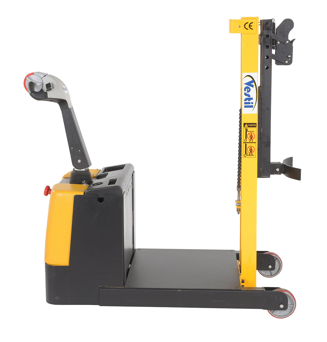 Steel Powered Drive Powered Lift Counter Balanced Drum Stacker 24V 57 In. x 26 In. x 58 In. 700 Lb. Capacity Yellow
