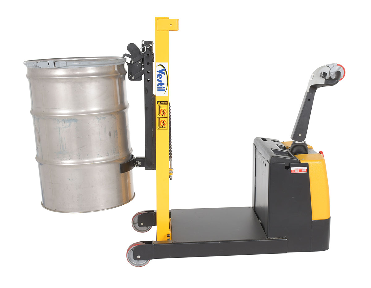 Drums have always been heavy and difficult to move. But, with the counter balanced drum lifter and transporter, those days are over. With a walk behind design and an ergonomic handle, the power and drive controls are quickly within the users reach. Design is perfectly suited for tight areas and loading/unloading drums onto pallets or scales. This unit includes a powered drive and a powered lift.