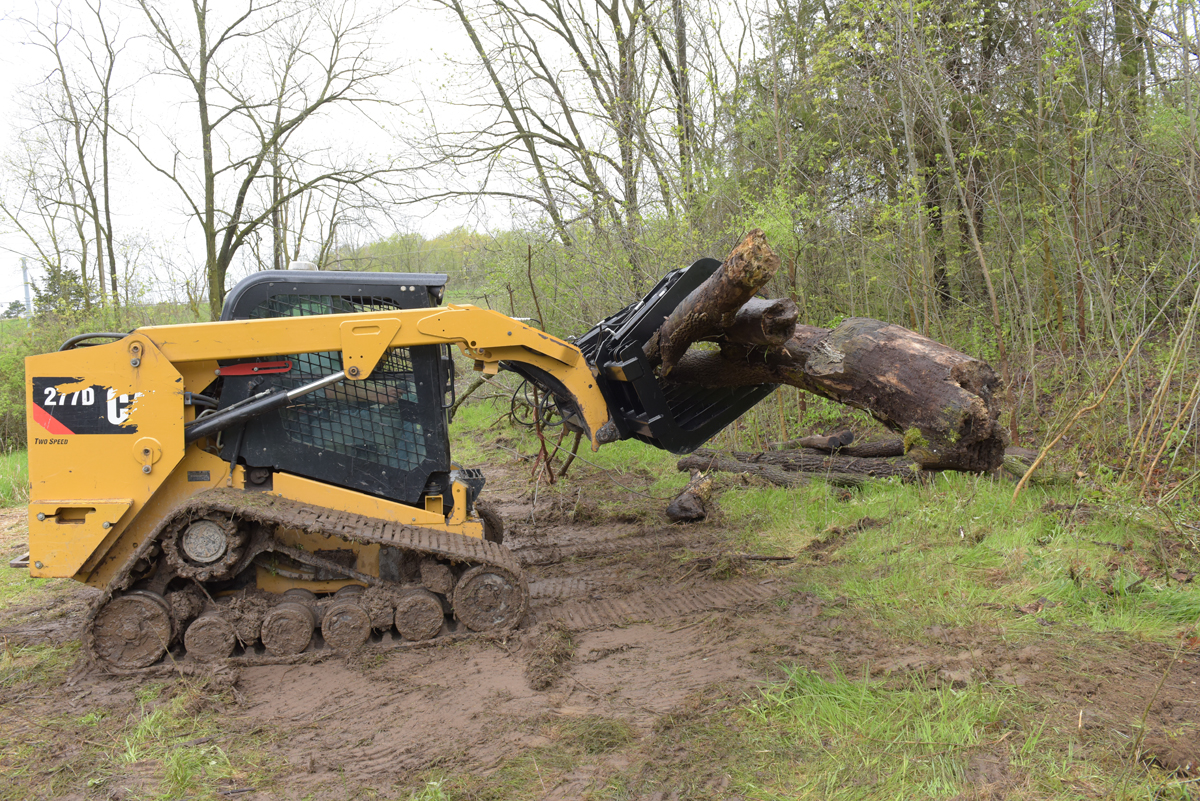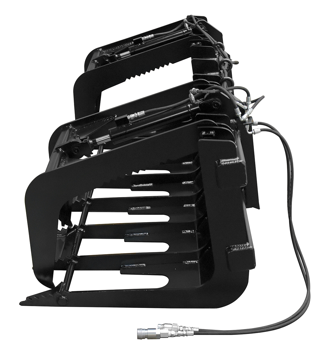 Steel Skid Steer Grab Bucket 84 In. Overall Width BlackA grapple bucket is a great tool for landscaping and other residential operations. With a simple attachment, the bucket can be in place and ready to use almost immediately. Constructed of steel, the grapple bucket shows long lasting strength throughout use. With the help of the leading edge and two over the top arms, this unit is perfectly designed for clearing brush and overgrown shrubbery. The open grate style bottom allows debris and other loose material to fall through, leaving only the intended objects in the bucket.