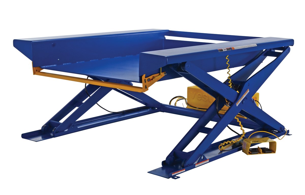 Steel Ground Lift Scissor Table 52 In. x 70 In. 2000 Lb. Capacity Blue