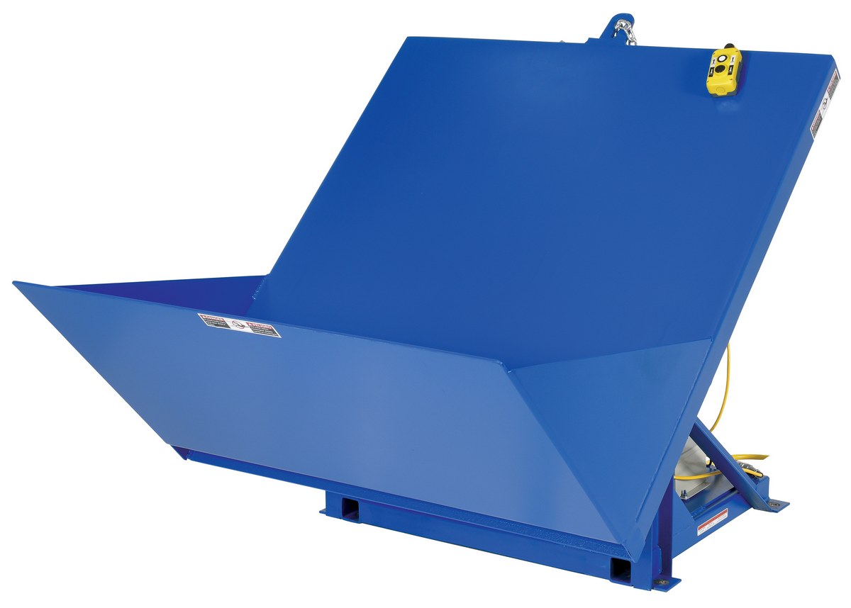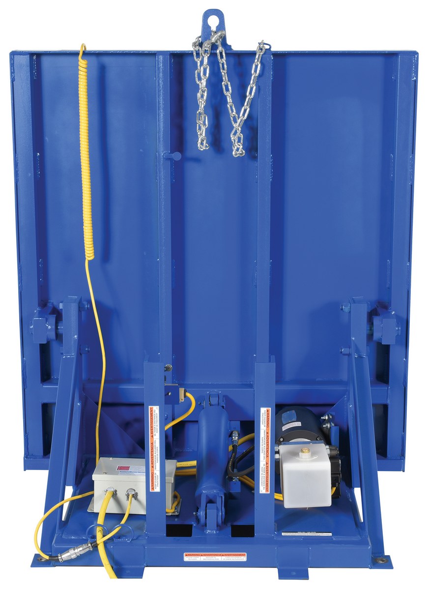 The efficiency master tilt table tilts pallets, crates, boxes, or baskets to facilitate easy container loading or unloading. The table features all welded steel construction for years of durability. The unique design minimizes pinch points to meet OSHA requirements. It's ideal for upending products in shipping and receiving operations. The unit is equipped with an industrial quality motor that delivers the best torque with minimal amperage draw for maximum life. Standard voltage is 460/3PH with additional voltage options available. The tilt table has a standard push button hand control with a double acting cylinder for controlled tilt and return. The unit must be lagged to the floor.