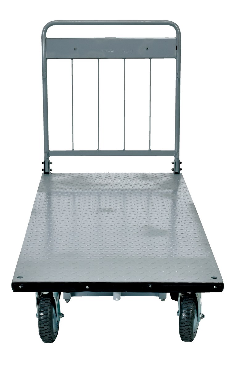 Steel Electric Material Handling Cart No Sides 28 In. x 60 In. 1500 Lb. Capacity GrayElectric material handling carts are ideal for moving heavy loads safely and easily throughout warehouses, offices, schools, and hospitals and incorporates a multitude of features to make light work of heavy loads. Reduce injury and increase productivity with these high quality carts. Features an 800W electric drive motor with (2) two 12V batteries for power and on-board 115V AC battery charger. The handle includes forward and reverse throttle control levers, an emergency reverse switch, a battery level gauge, and a slow/fast speed switch. Pinpoint turning is accurate with the mid-axle drive feature.
