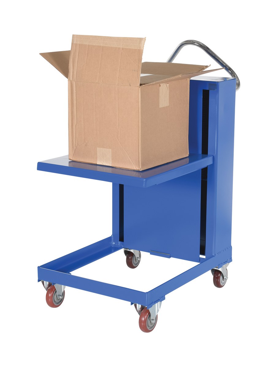 The self-elevating table is designed to automatically raise or lower as materials are removed or added to the platform, keeping material at an ergonomic work height. It increases productivity while reducing potentially harmful bending and twisting motions. The counter balance springs can easily be added or removed to adjust weight-to-height sensitivity. This feature allows the user to conveniently set the table to fit each application. It rolls smoothly on polyurethane casters.
