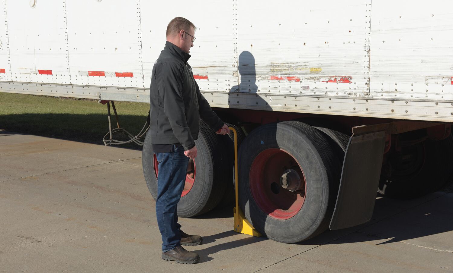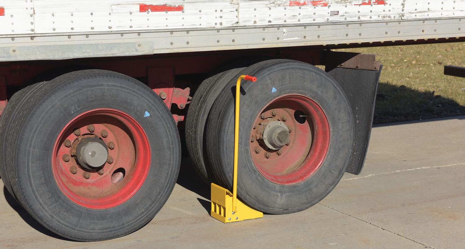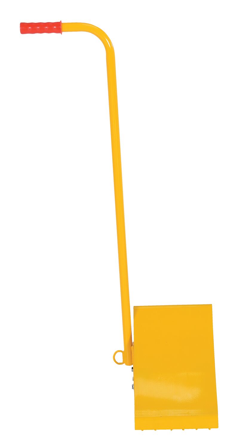 The fabricated ergo-handle Wheel Chock has an ergonomically design that makes it easy to move wheel chocks in and out of position under trailer wheels. It reduces the risk of back, knee, and foot injuries. The handle is constructed of steel and includes a yellow powder coat finish. Assembly required. D-ring provided for attaching security chain. Chain not included.