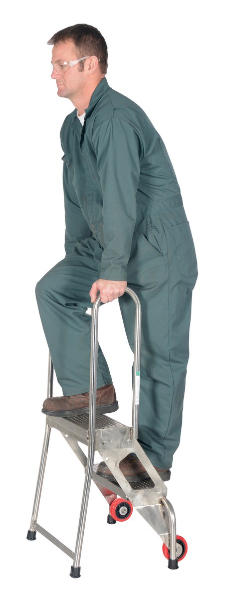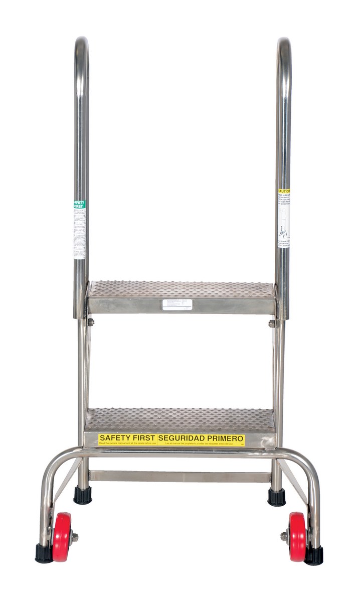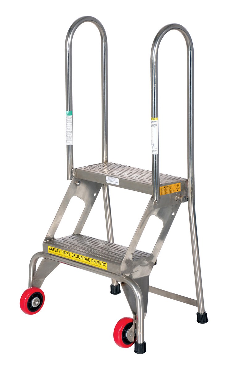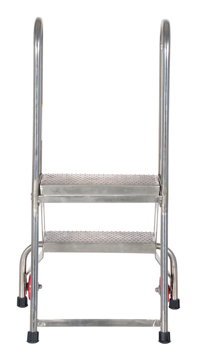Stainless Steel Folding Ladder with Wheels 2 Step 350 Lb. Capacity Blue