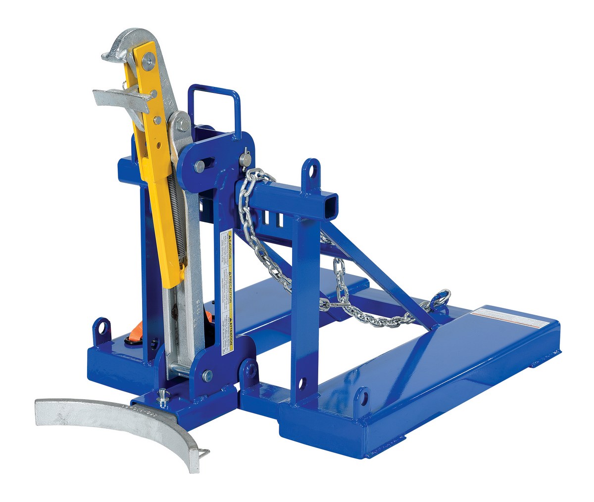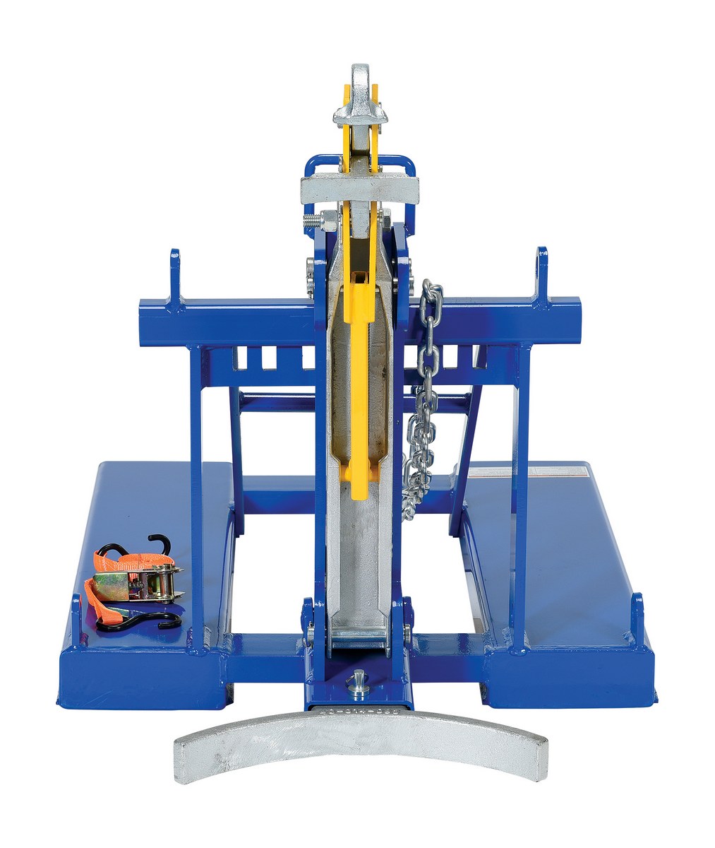 Steel Automatic Eagle Beak 1 Drum 1,000 Lb. Capacity BlueThis time tested and proven automatic eagle beak Drum Lifter design allows a fork truck operator to easily secure, move, and release drums without leaving the seat of the fork truck. For use with open (lid installed and secured) and closed head steel, plastic and fiber drums with a top lip strong enough to support the weight of the drum. This unit is a single-drum configuration. Includes safety restraint to secure unit to the fork truck. A ratchet strap is supplied to secure the drum to the unit when traveling over rough terrain. Complies with OSHA 1910.178; ANSI B56.1.