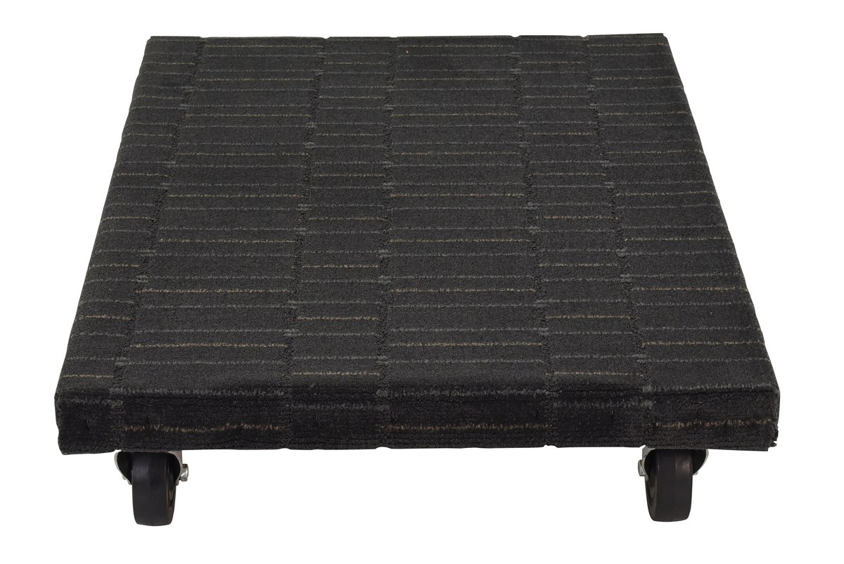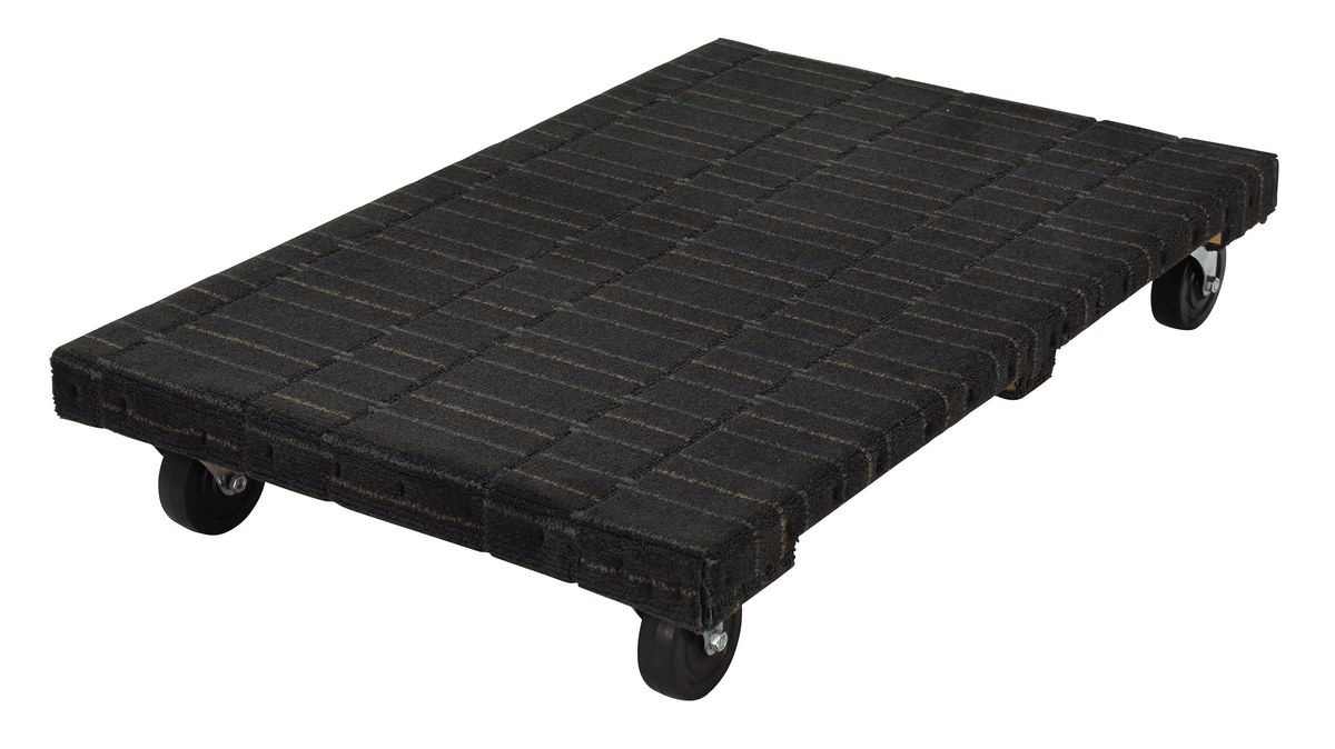 The Hardwood dolly transports boxes, crates, or supplies. Carpet color may vary. Unit maneuvers on casters. Optional pull strap or hook available.