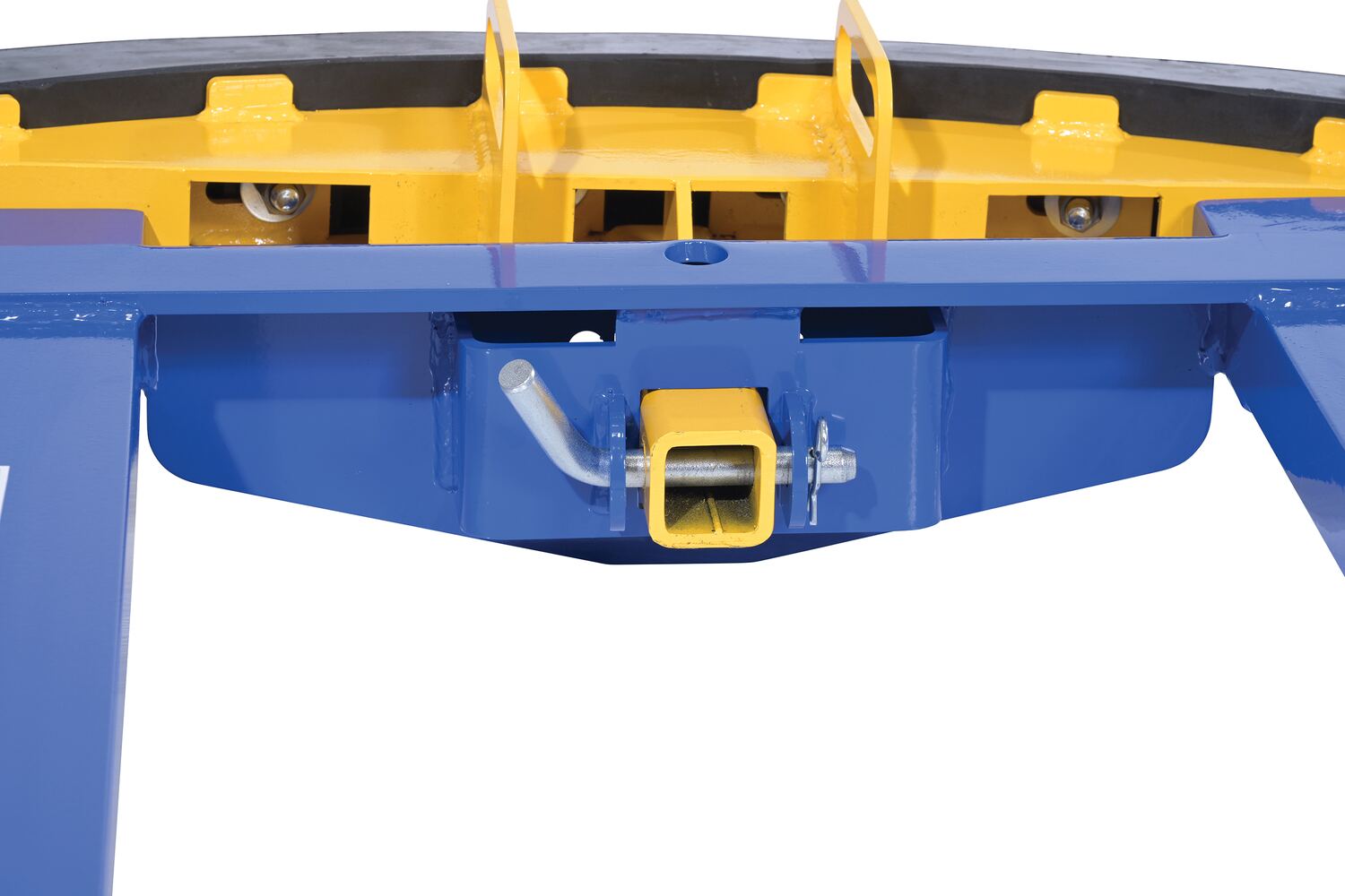 Steel Fork Truck Hook Base 38 In. Length With Steel/Rubber Push Bumper-Attachment to 2 In. Receiver 15 In. x 28 In. x 5-3/4 In Blue/Yellow