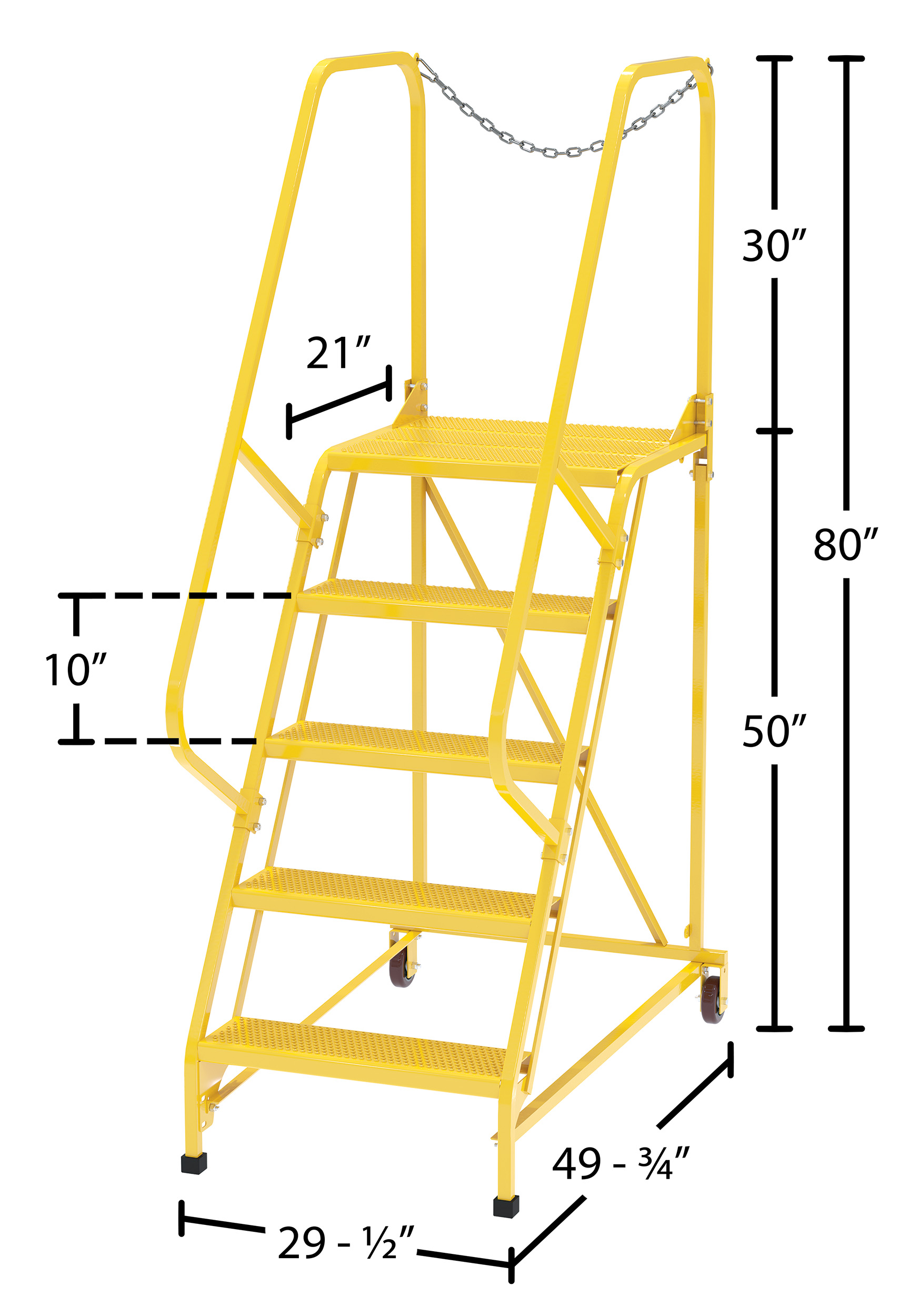 Top Step Height (in.): 50 Hand Rail Height (in.): 30 Top Platform Length (in.): 21