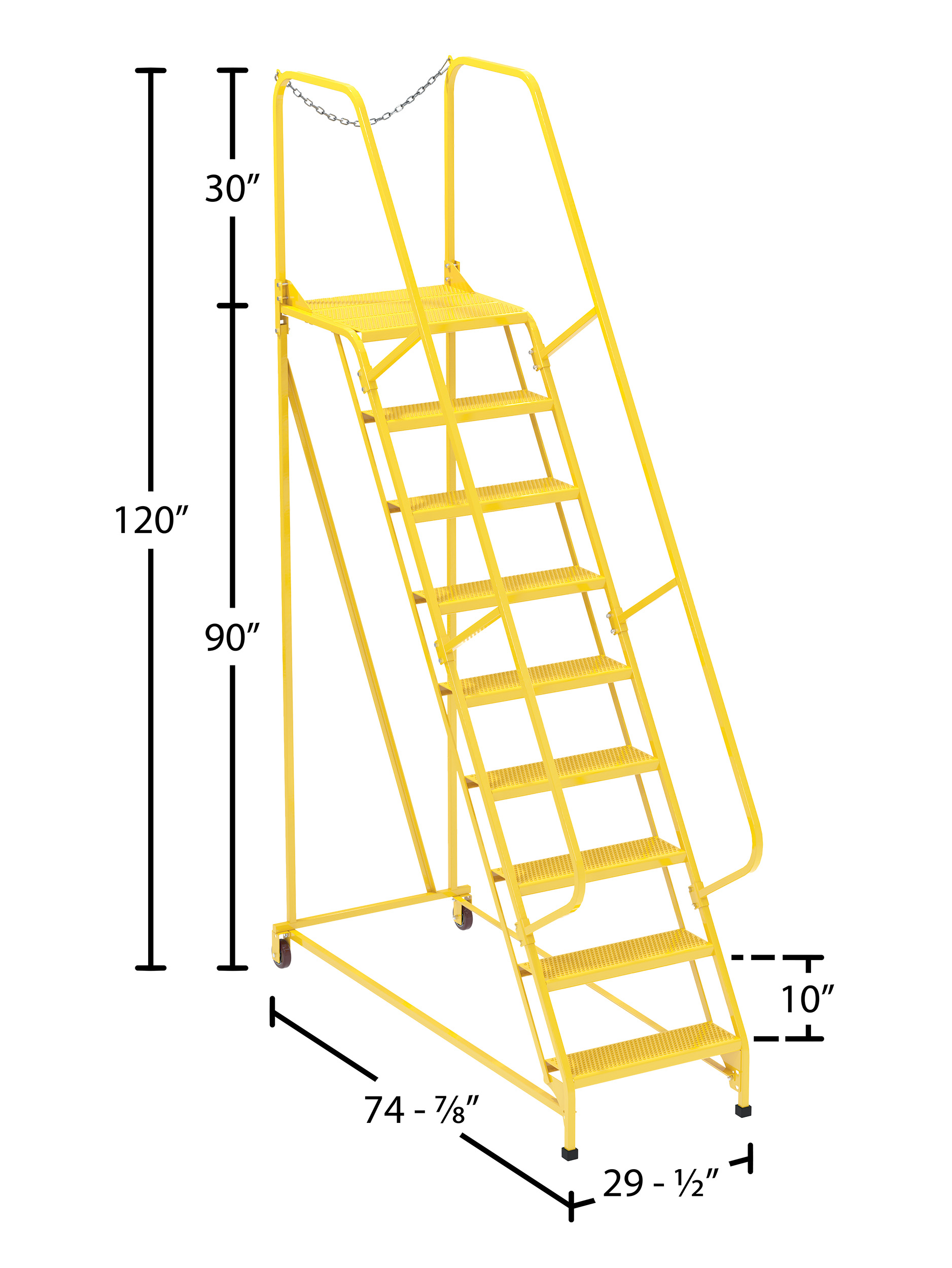 Top Step Height (in.): 90 Hand Rail Height (in.): 30 Top Platform Length (in.): 21
