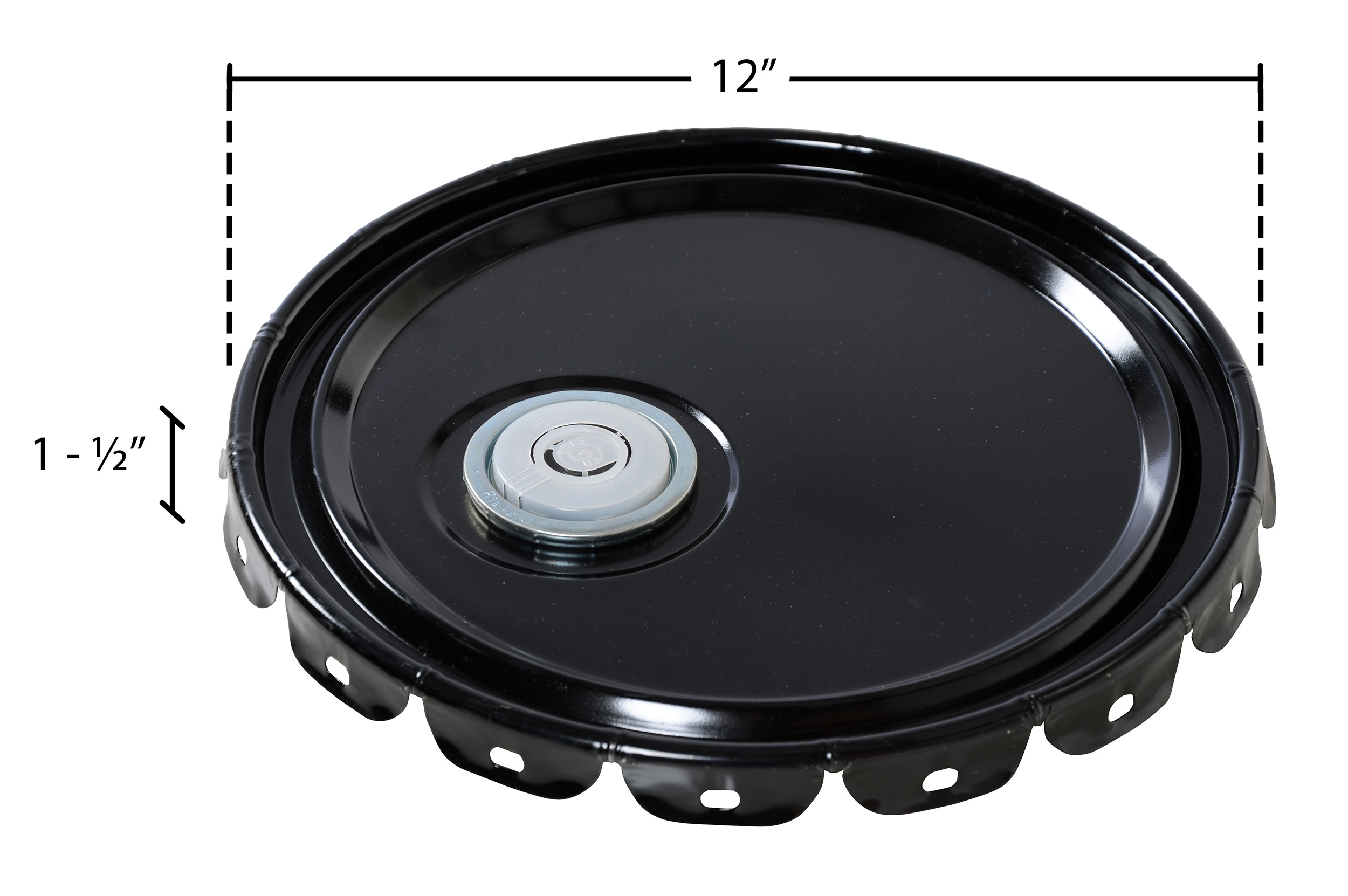 Steel UN Rated Spout Top Lid 5 Gallon BlackSteel lid for use with steel pail. UN rated with spout.