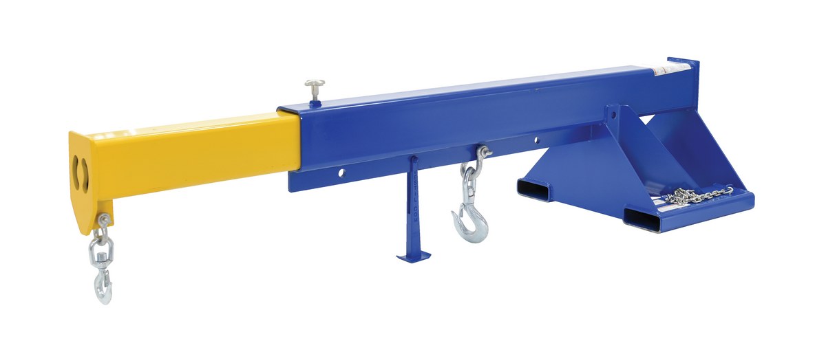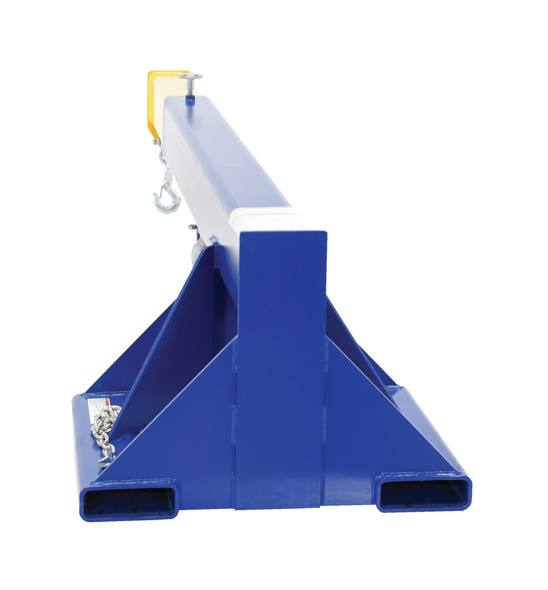 Unique performance, convenience, and safety features are built into every lift master boom. Fabricated from structural steel with welding to meet AWS creates a rugged and durable boom that will provide long term service. This unit come with an infinitely adjustable locking screw. A safety restraint secures the boom to the fork truck for safe operation. Includes two (2) lifting hooks.