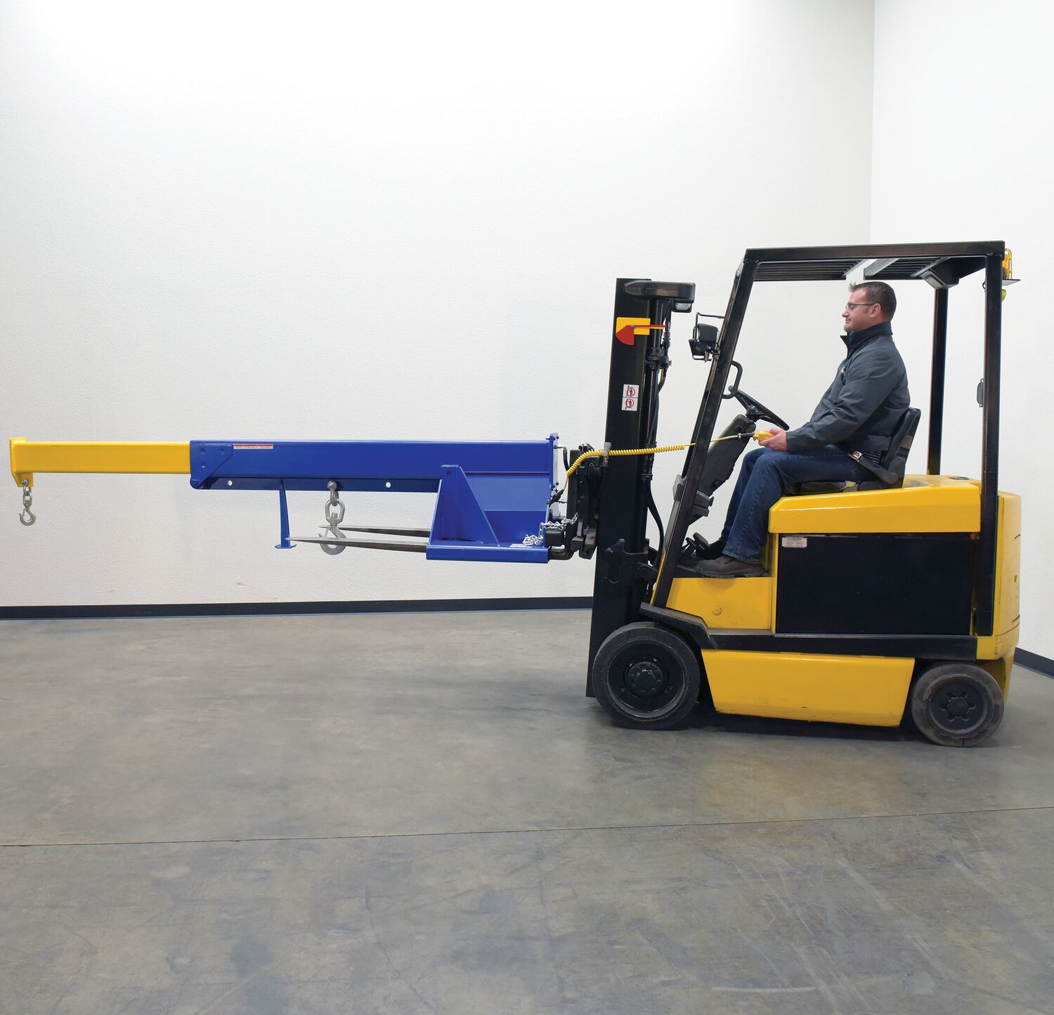 Steel Hydraulic Telescoping Boom 12 Volt DC 24 In. Fork Pocket Center 8,000 Lb. CapacityThe DC powered telescoping boom has all the benefits of the standard lifting boom, except now it has the capability of being powered. The DC powered design includes a power unit housed between the fork tubes and the outer boom. By using the handheld controller the boom can be extended or retracted. The hand held controller connects to the power unit via a pigtail cord. Painted for a smooth finish and to limit abrasion. Includes two (2) lifting hooks.