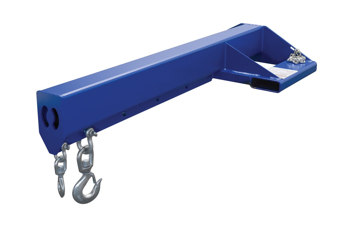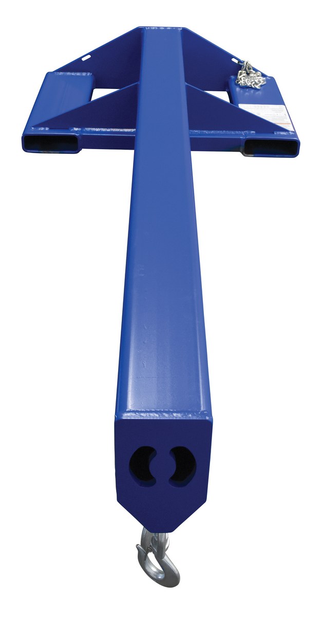 Unique performance, convenience, and safety features are built into every lift master boom. Fabricated from structural steel with welding to meet AWS creates a rugged and durable boom that will provide long term service. A safety restraint secures the boom to the fork truck for safe operation. Includes two (2) lifting hooks.