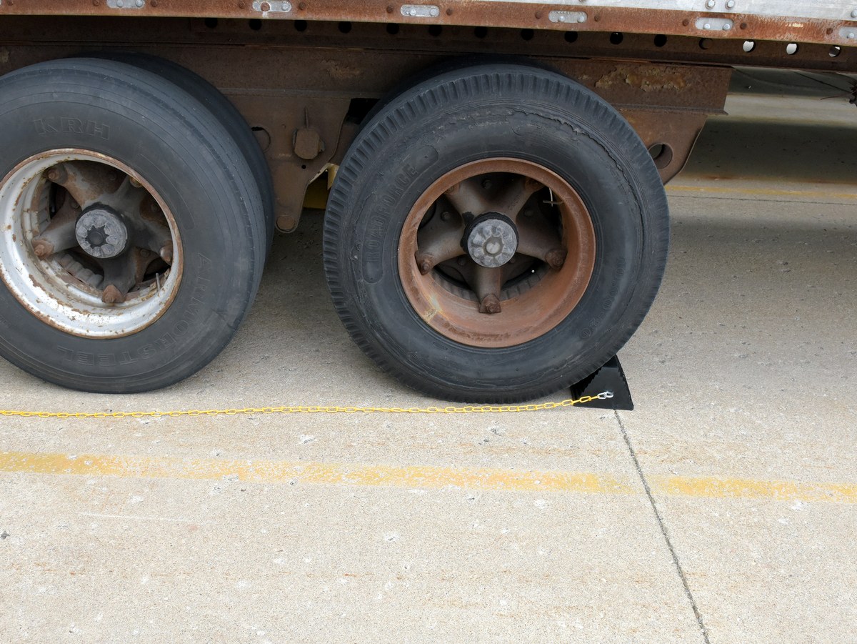 Discourage theft and misplacement of wheel chocks. Facilitate safety in the dock area. 15 foot chain attaches to the hanger. Hanger is then secured to the dock wall. Chain is fastened to the chock with cold shut.