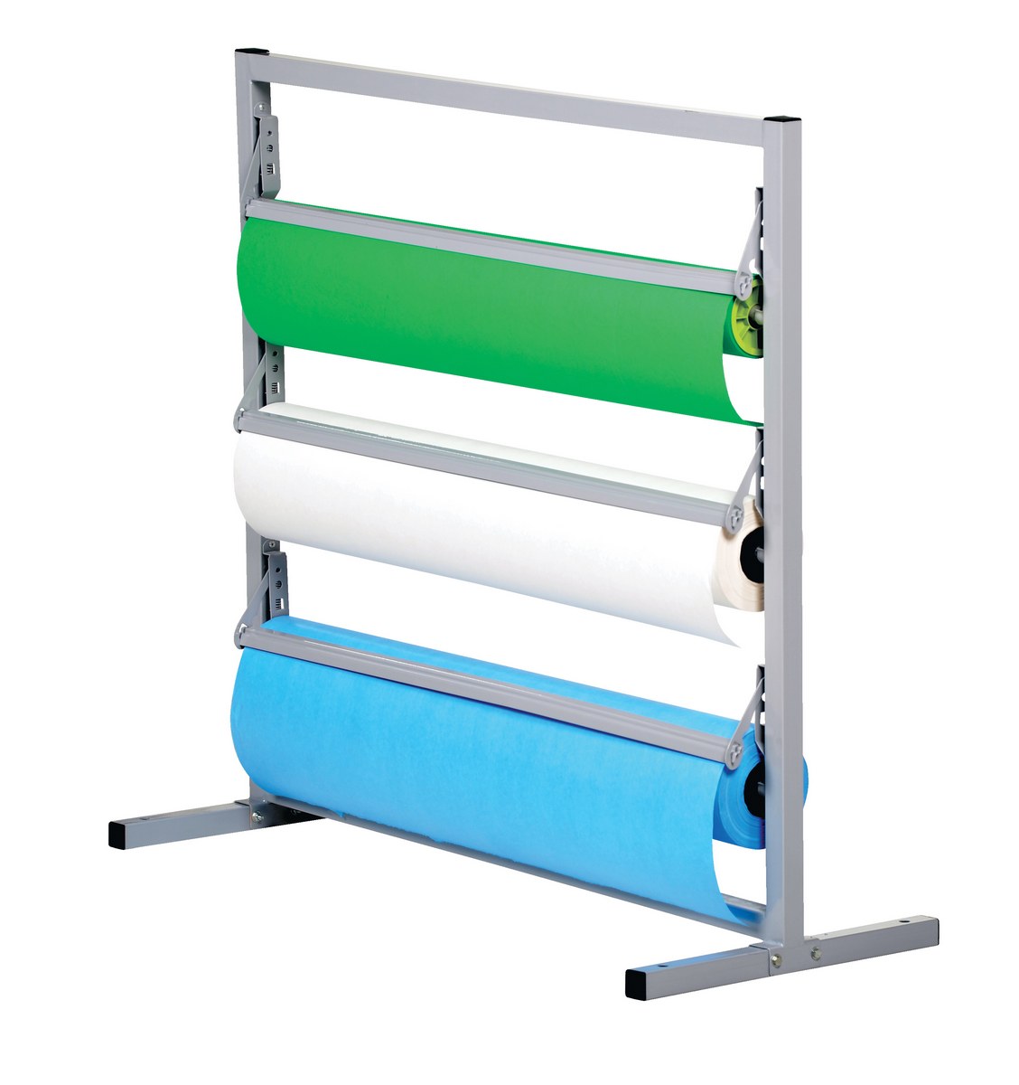 The paper dispenser stand with three (3) tiers, is designed to conveniently hold rolls of paper and allow for easy horizontal dispensing.