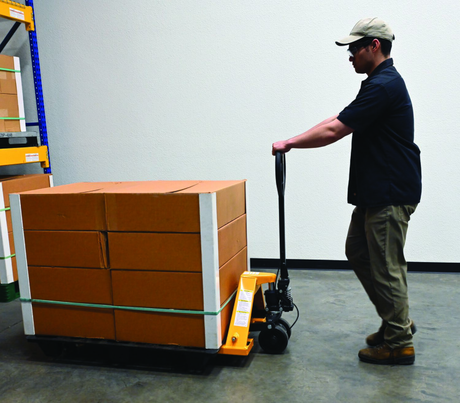 The pallet truck with hand brake option allows you to depress the hand brake to slow down or stop truck.