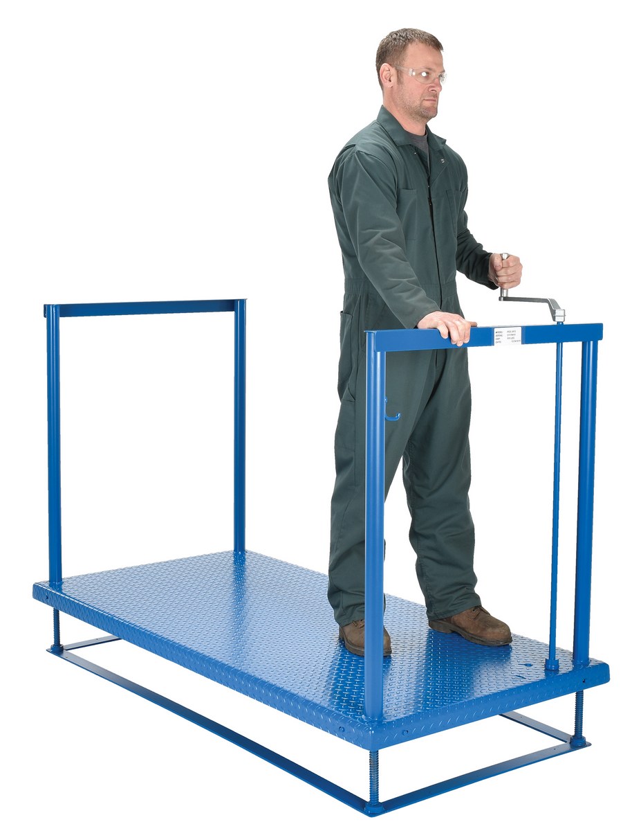 Steel Ergonomic Post-Crank Worker Platform 72 In. x 36 In. x 65-5/8 In. 500 Lb. Capacity Blue