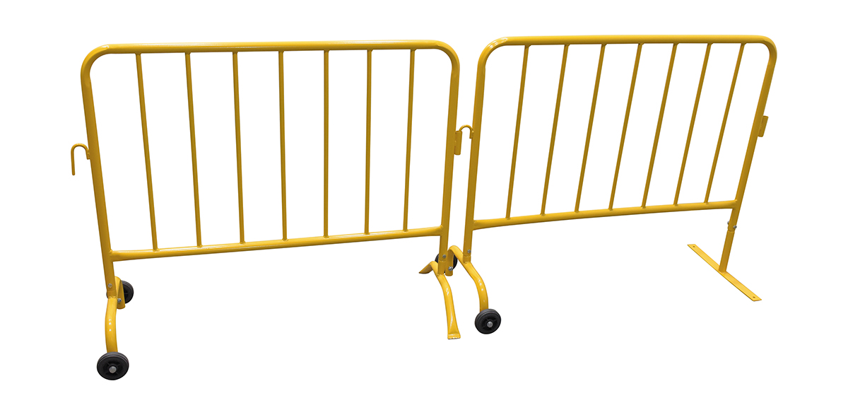 Steel Crowd Control Interlocking Barrier with Feet (1) Wheeled (1) Flat 47-1/2 In. Length Yellow