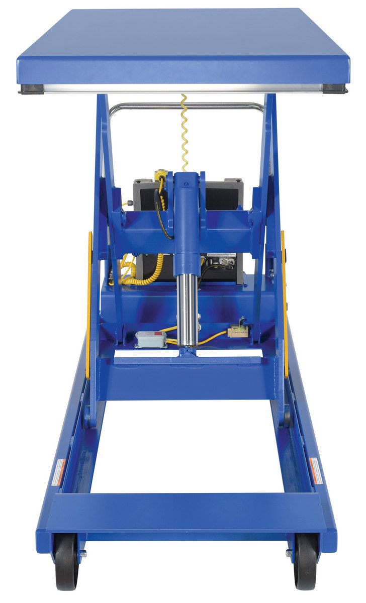 Heavy Duty portable lift scissor tables can easily transport and elevate heavy loads. Featuring glass nylon filled casters (2 swivel and 2 rigid), floor lock, patented electric pinch point guards, and magnetic hand controls. Key-operated on/off control for better security is built into the power unit. Heavy duty 12V DC powered unit with deep cycle battery, an on-board battery charger and battery charge indicator gauge comes standard.