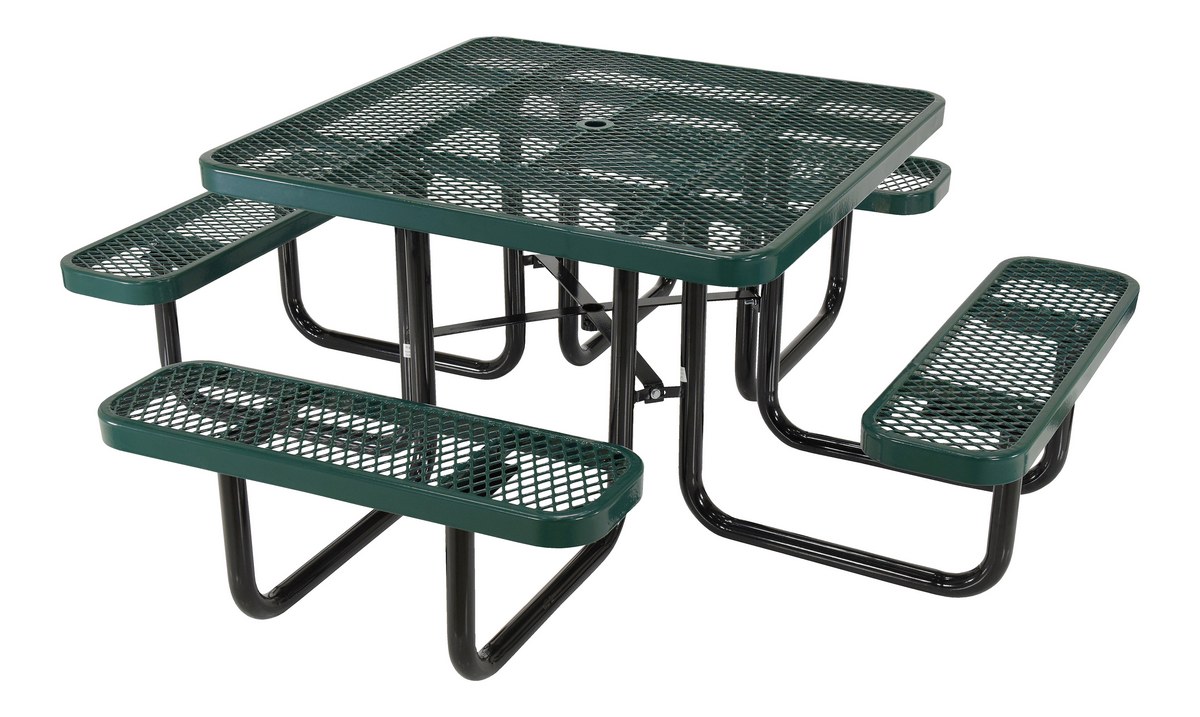 Steel Picnic Table Expanded Metal Square Top 46 In. x 46 In. Green