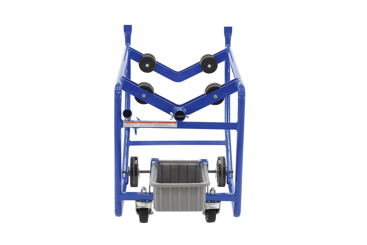Steel Revolving Drum Cart 66-3/4 In. x 18-7/8 In. x 26-3/4 In. 1000 Lb. Capacity BlueDesigned to rotate a 55 gallon steel drum from the vertical position to the horizontal position so their contents may be emptied. Equipped with rollers for mixing. Includes a built in drip pan to provide a clean, safe work floor. Rolls on two (2) 3" swivel casters and two (2) 5" rigid casters. Simple one-person operation. Steel construction. Durable powder coat finish.
