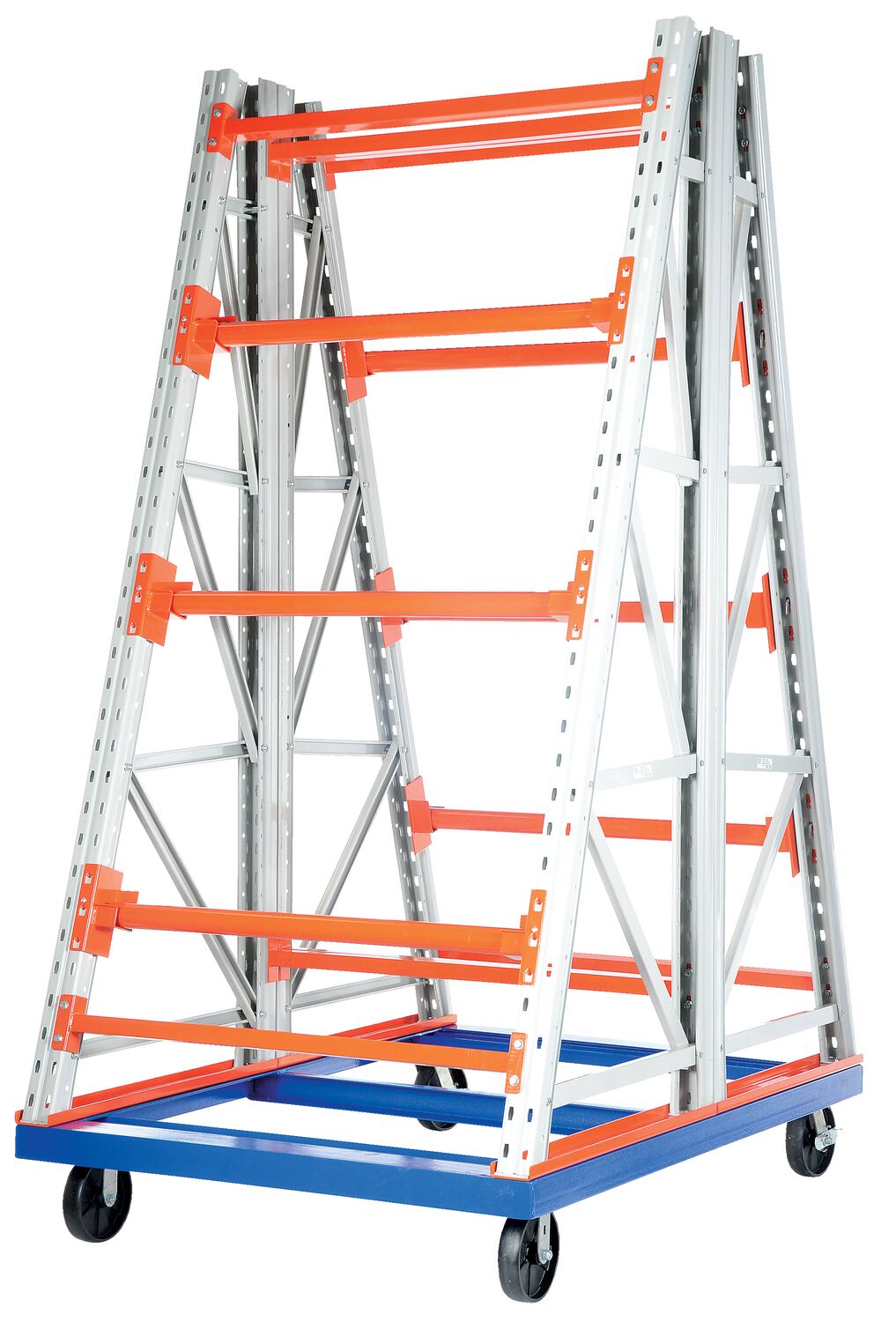Steel Portable 2 Sided Reel Rack 72 In. x 53 In. x 96 In. 4000 Lb. Capacity White/Orange/Blue