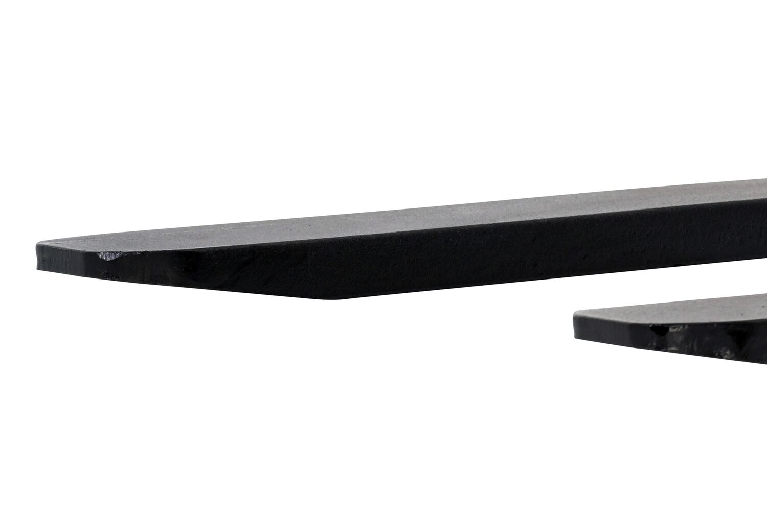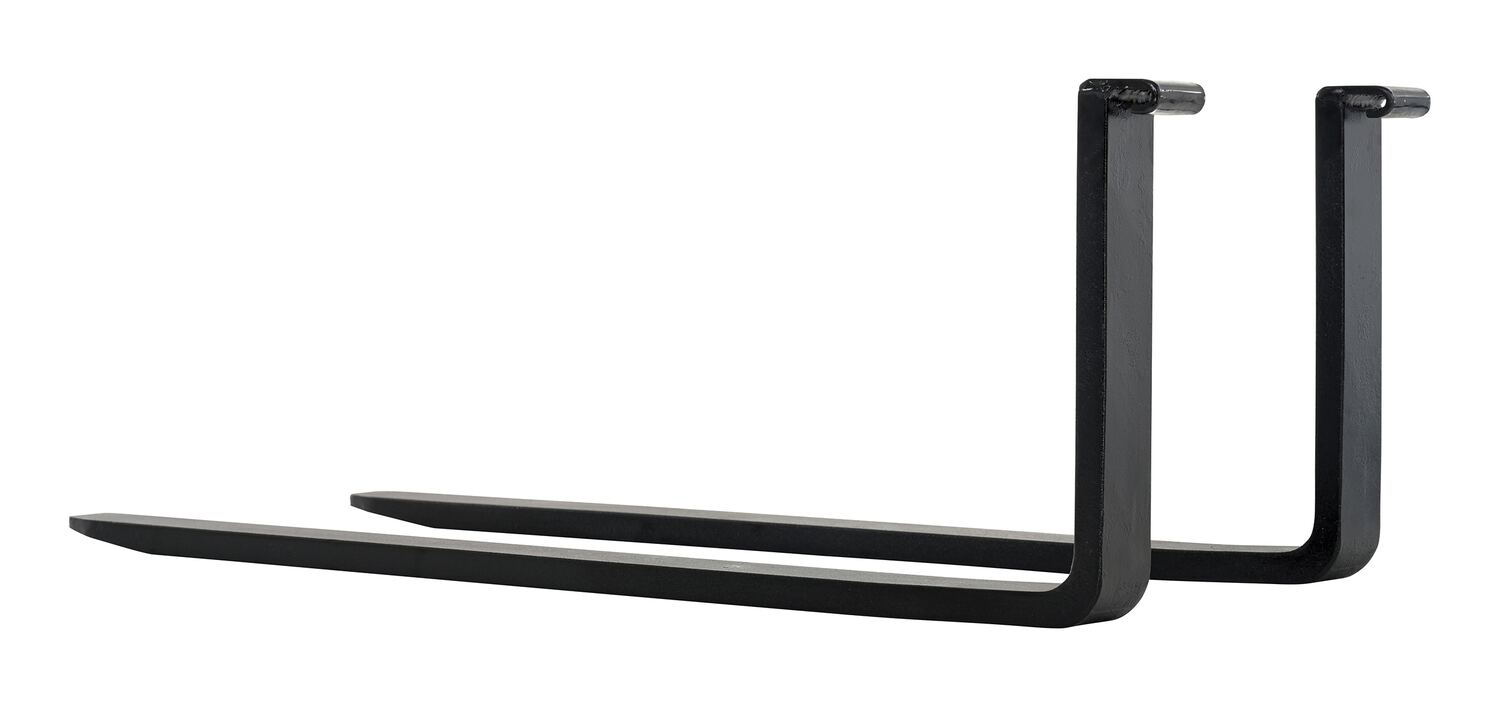 Steel Forks for Stackers 42 In. Length 500 Lb. Capacity BlackDuring a work day, a variety of jobs can arise. This can lead to a need for a variety of attachments. When working with different sized items, a need for a set of forks other than the standard is sometimes needed. A set of 42” forks that can attach to a compact stacker quickly and works well in small congested areas. Forks are constructed of steel for consistent long term daily use. Powder coated finish for added built in toughness.