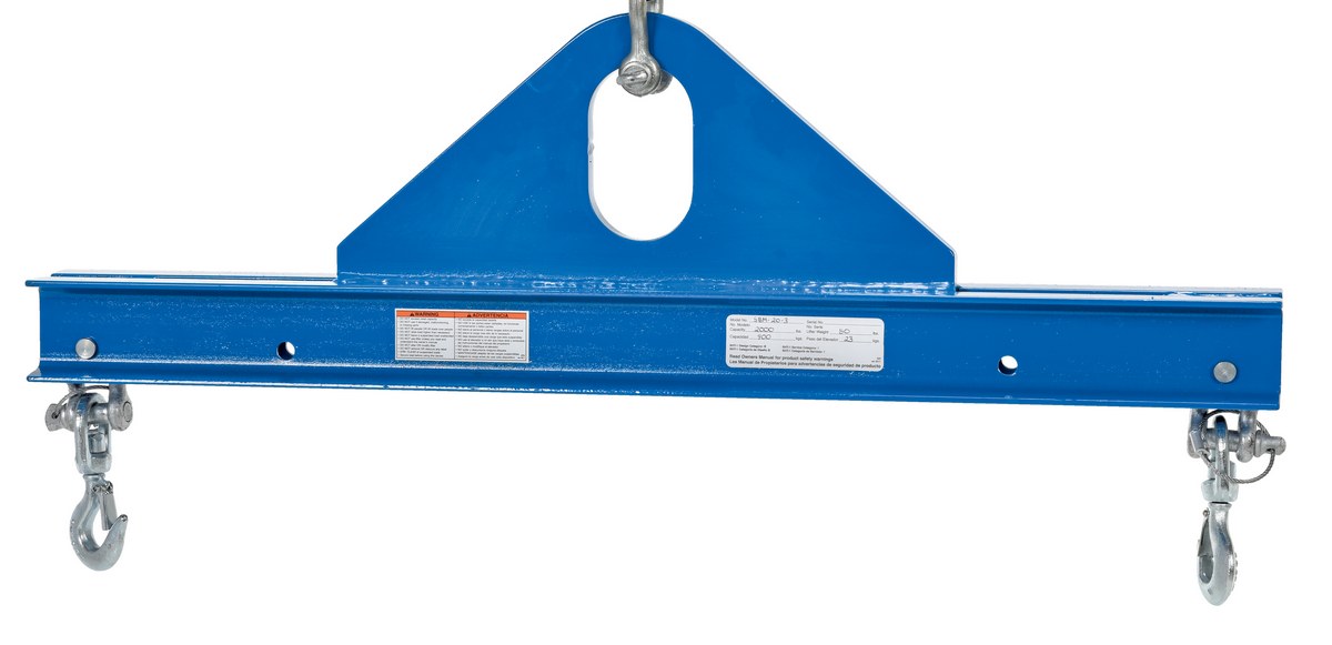 Steel Economy Spreader Beam 36 In. Length 2,000 Lb. Capacity BlueThis versatile economy spreader beam is ideal for lifting a variety of loads where headroom is limited. The unit is designed with a powdered coated heavy duty steel construction. The attached swivel hooks allow for easy lifting and transferring of products from workstation to workstation.
