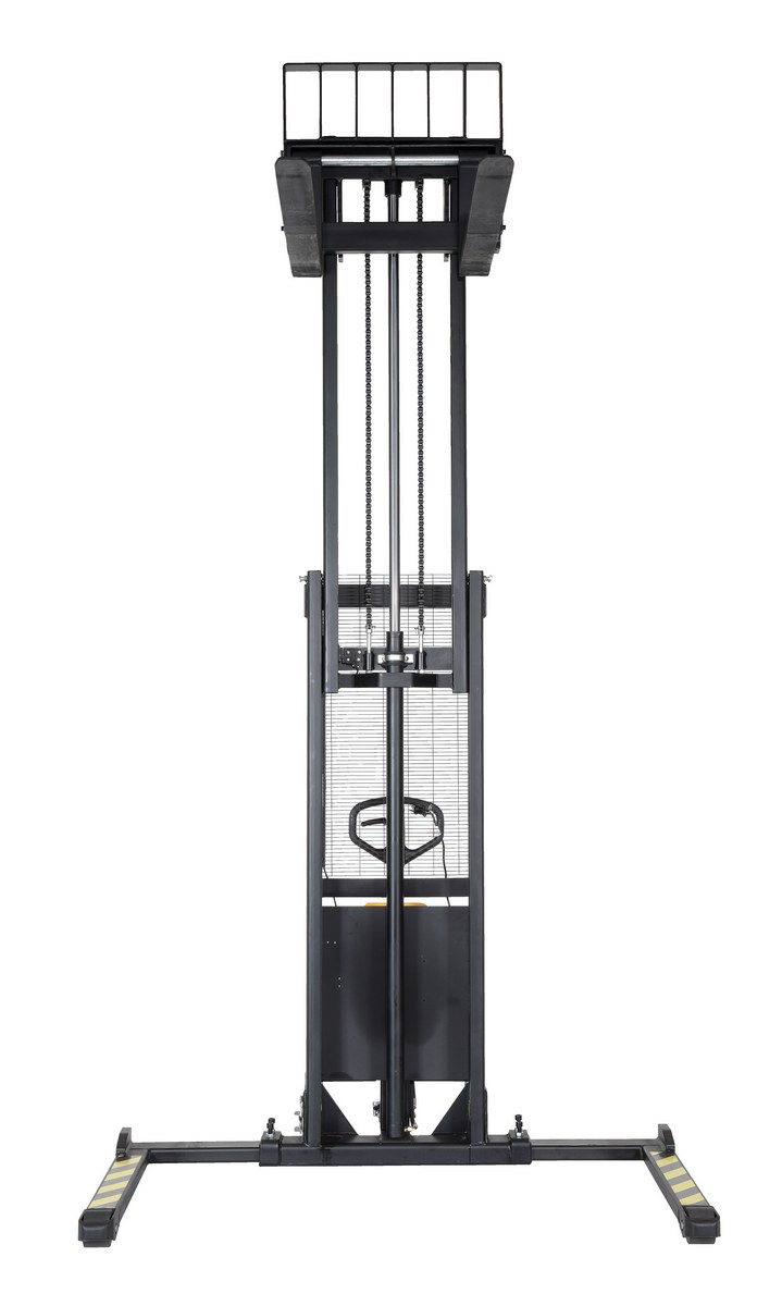 Steel/Plastic Hand Pump DC Powered Stacker with Adjustable Forks and Legs 118 In. Raised Height 2,000 Lb. Capacity Black / Yellow