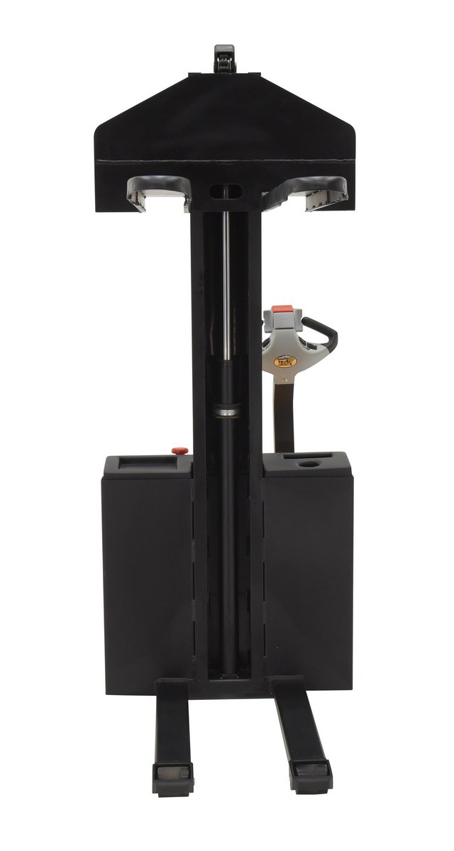 Steel Narrow Mast Stacker DC Powered 62 In. Raised Height Fixed Fork 21 In. Fork Width 2,200 Lb. Capacity Black / Yellow