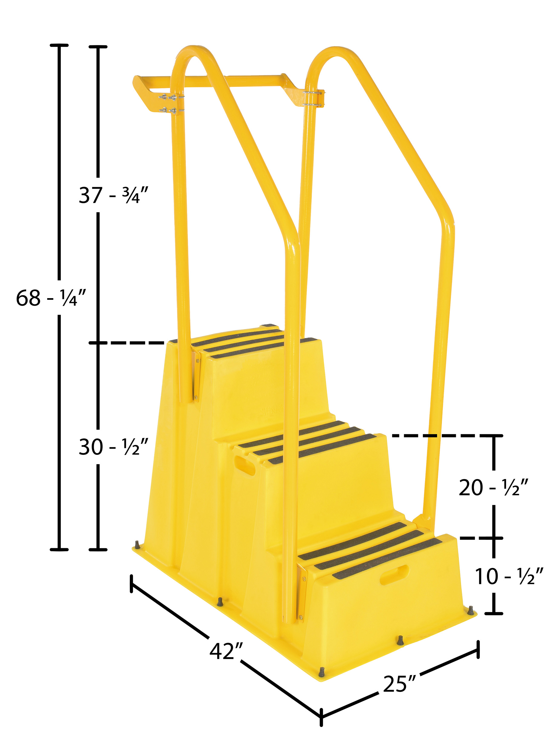 Polyethylene Nestable with Hand and Back Rails 3 Step 500 Lb. Capacity Yellow