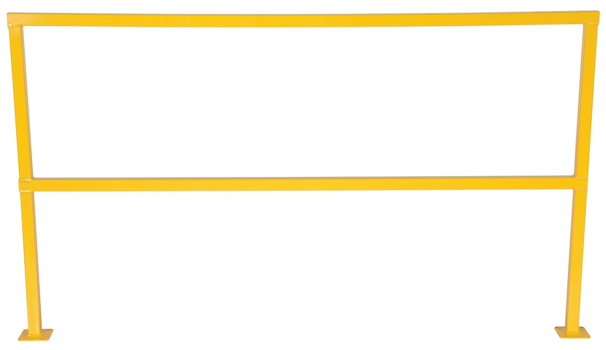 Steel square safety Handrail provides an economical way to protect people and machinery. Applications include loading docks, floor openings, walkways, and mezzanines. Highly visible safety yellow powder coat finish, hardware included.