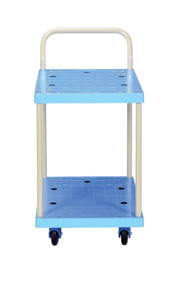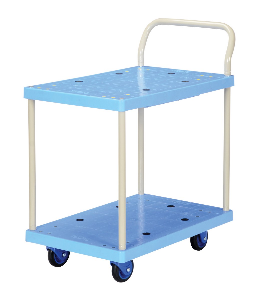 The plastic platform cart is a great addition to the shipping and distributing facilities. The double deck plastic platform creates a durable, yet lightweight construction that can be transferred simply from workstation to workstation. The unit rolls on casters for smooth transference over a variety of terrains. The attached handle creates a more ergonomic posture of personnel during use.