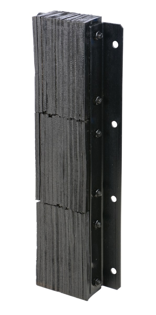 The laminated Dock Bumper provides durable, economical protection for loading docks and trailers. Unit is constructed of fabric reinforced rubber from recycled truck tires. The pads are laminated between painted structural angles and held together with steel tie rods. Installation is quick and easy by bolting or welding unit to the dock. Width is bolt hole center to bolt hole center. The installation hardware is available separately.