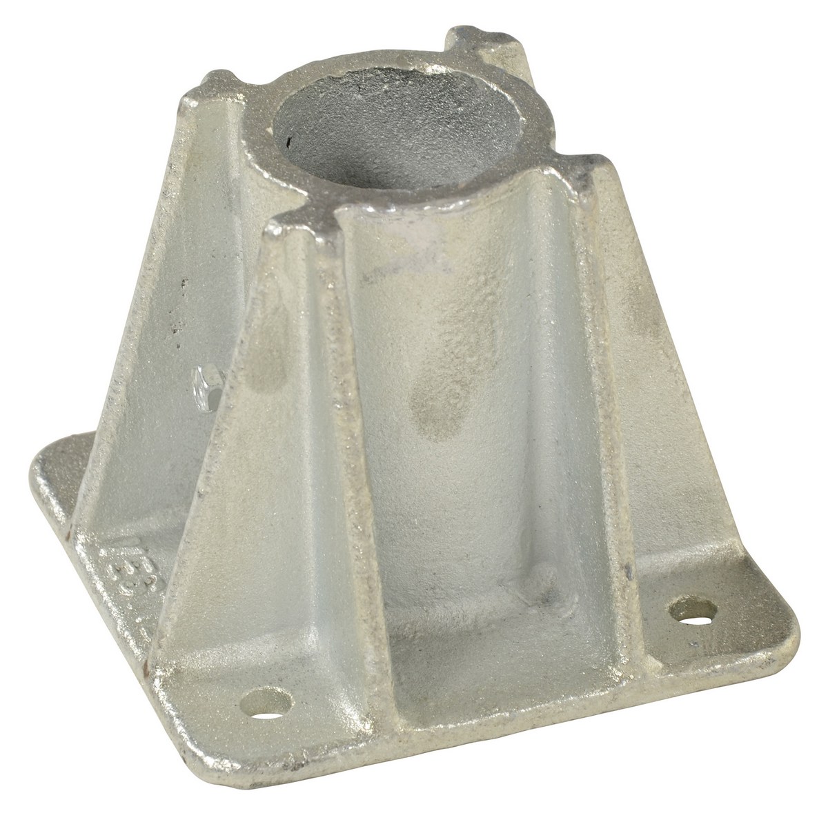 Cast steel single socket option for pipe safety railing. Accepts wood when a toe board is required.